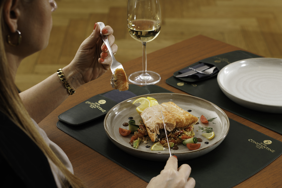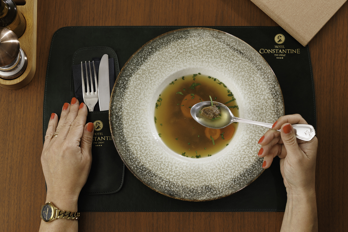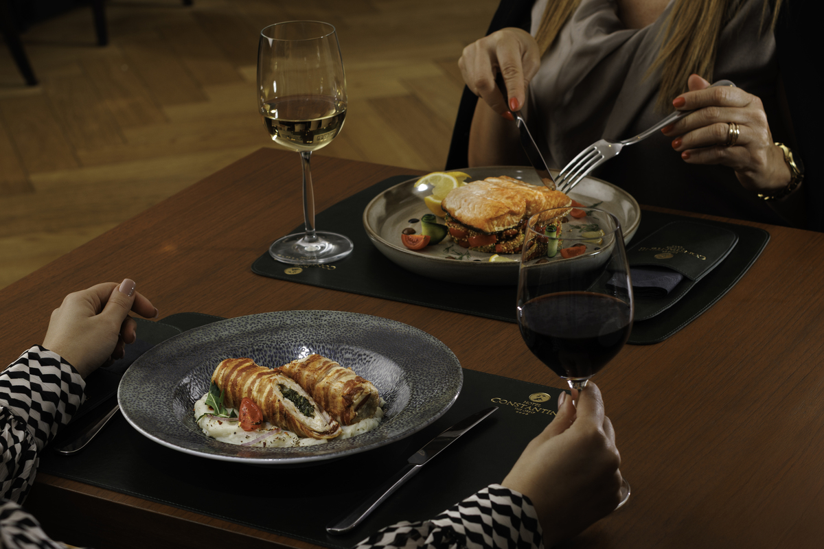 Restoran hotela Constantine the Great nudi udoban ambijent, idealan za poslovne sastanke i goste koji žele mir i privatnost.